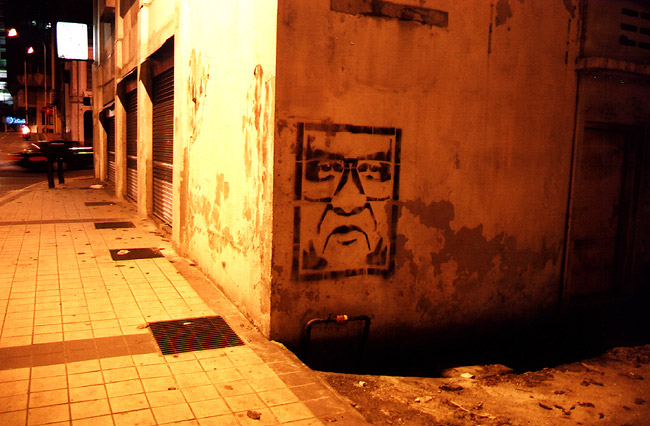 Stencil graffiti in Kuala Lumpur, between Masjid Jamek and St John's Cathedral.