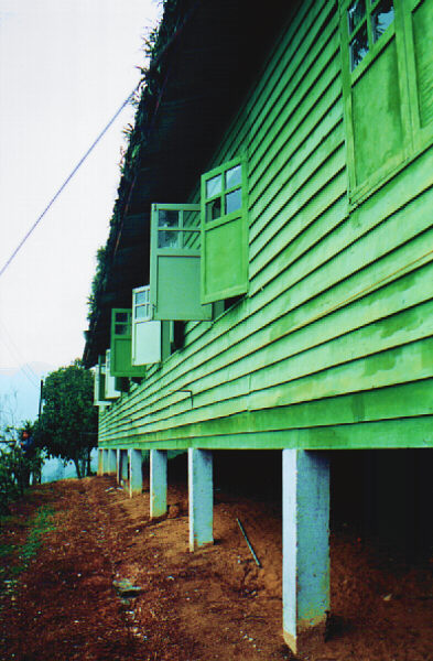Cameron Highlands, Pahang The green dormitory that we shared with 30 others is perched near the top of the tea plantation, and is similar to the quarters for the tea plantation workers. |