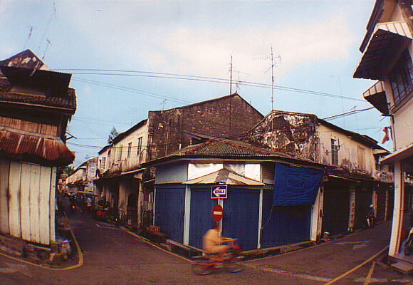 Malacca This street turns off Jalan Bunga Raya leading to Kampung Jawa. The name escapes me at the moment, but my mom told me it used to be known as Whore Lane (I'm sure it trips off the tongue more eloquently in Chinese) for obvious reasons. Today the ladies no longer walk the street and old drunks regale ancient exploits in front of ramshackle zinc-reinforced pre-war shophouses. This street has arguably the last old-style drinking hole in Malacca unspoiled by the plywood and plastic 'modernisation' of the 1980s onward. |