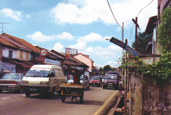 Malacca Tranquerah Road, where I lived until 1992. One of the narrowest passages into the town centre, Tranquerah was for long Malacca's northern gateway (where cars to and from KL had to pass through) until the completion of the North-South Highway. I went to Tranquerah English School (TES) at the further end of this road and lived at its mid-way point, where nearby was (i) the famous Tranquerah Kuay Teow Soup, (ii) Methodist Girl's School, (iii) the Badminton Hall, and (iv) Wesley Church where I attended kindergarten. |