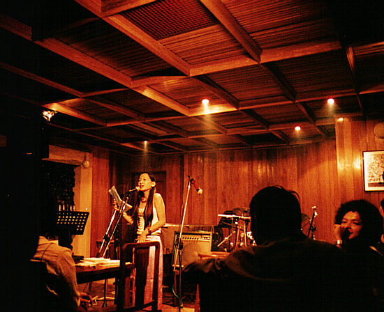 July 4, Jerome Kugan and friends Sei Hon, Aziz, Pang, Jaclyn, Ashok, Sharanya, et al - a very muhibbah collective - perform Making Babies, melding spoken word with music, poetry and song, monologue and table-top dancers. Here, Jaclyn Kee takes the mike to perform a song a capella. [ Next ] |