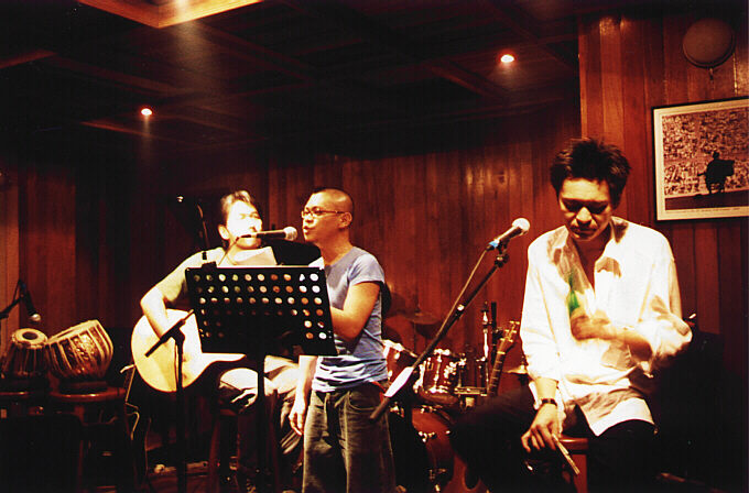 Open mike session after the Songwriter's Round is done has Jerome backed up by Sei Hon on guitar. That's Pete Teo on the right.